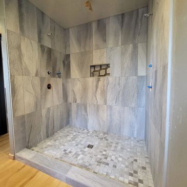 We offer remodel or new build custom tile showers. We oversee all aspects including drain connection, complete waterproofing, new subfloor if required and new stud wall blocking if required.